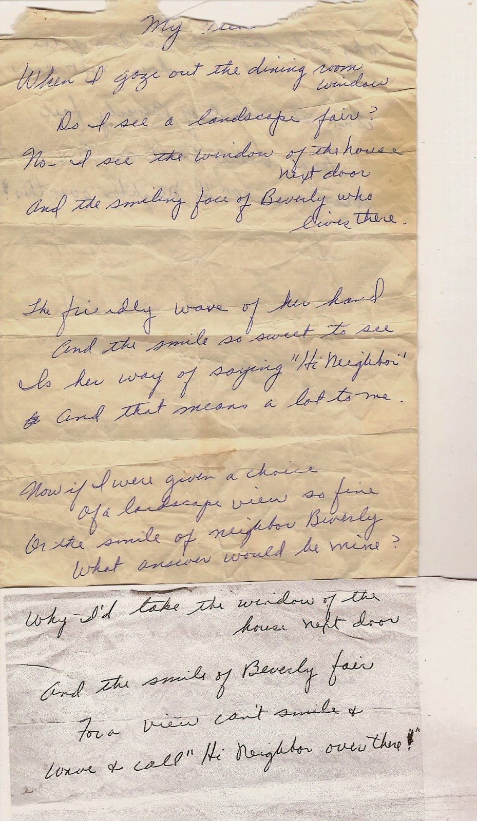 I remember my next door neighbor, Donna Belle Uebele, writing a poem about me 1956.